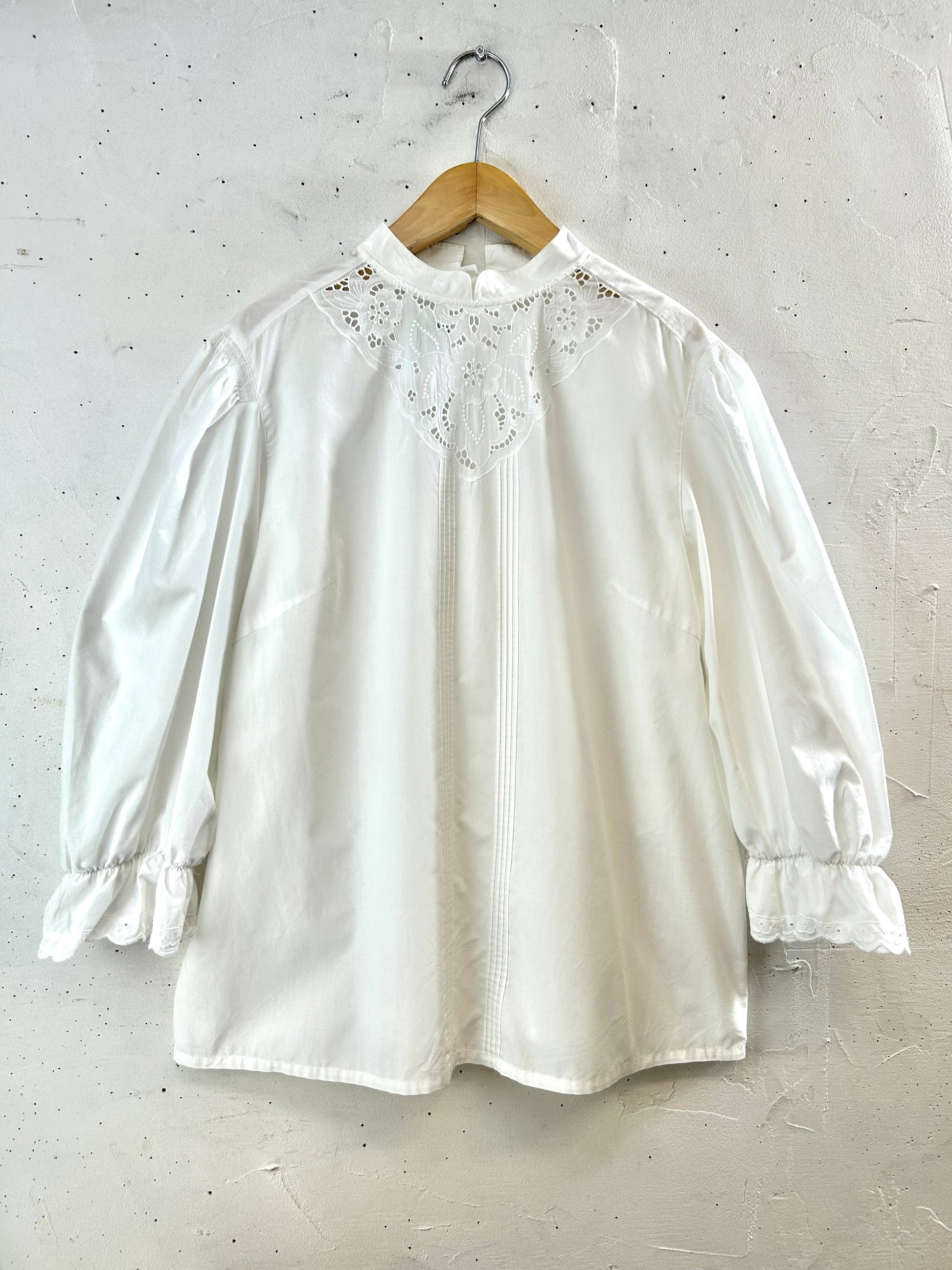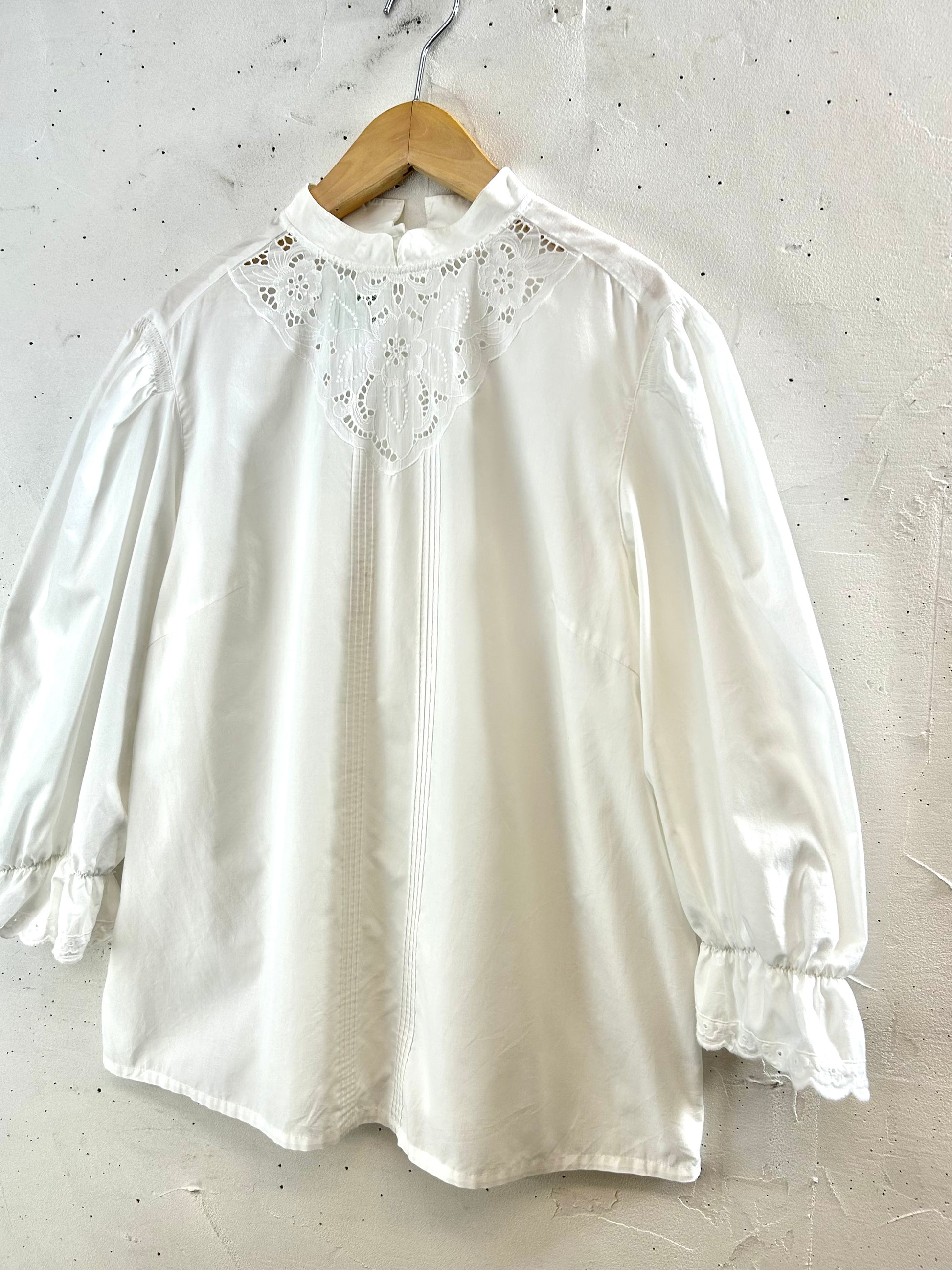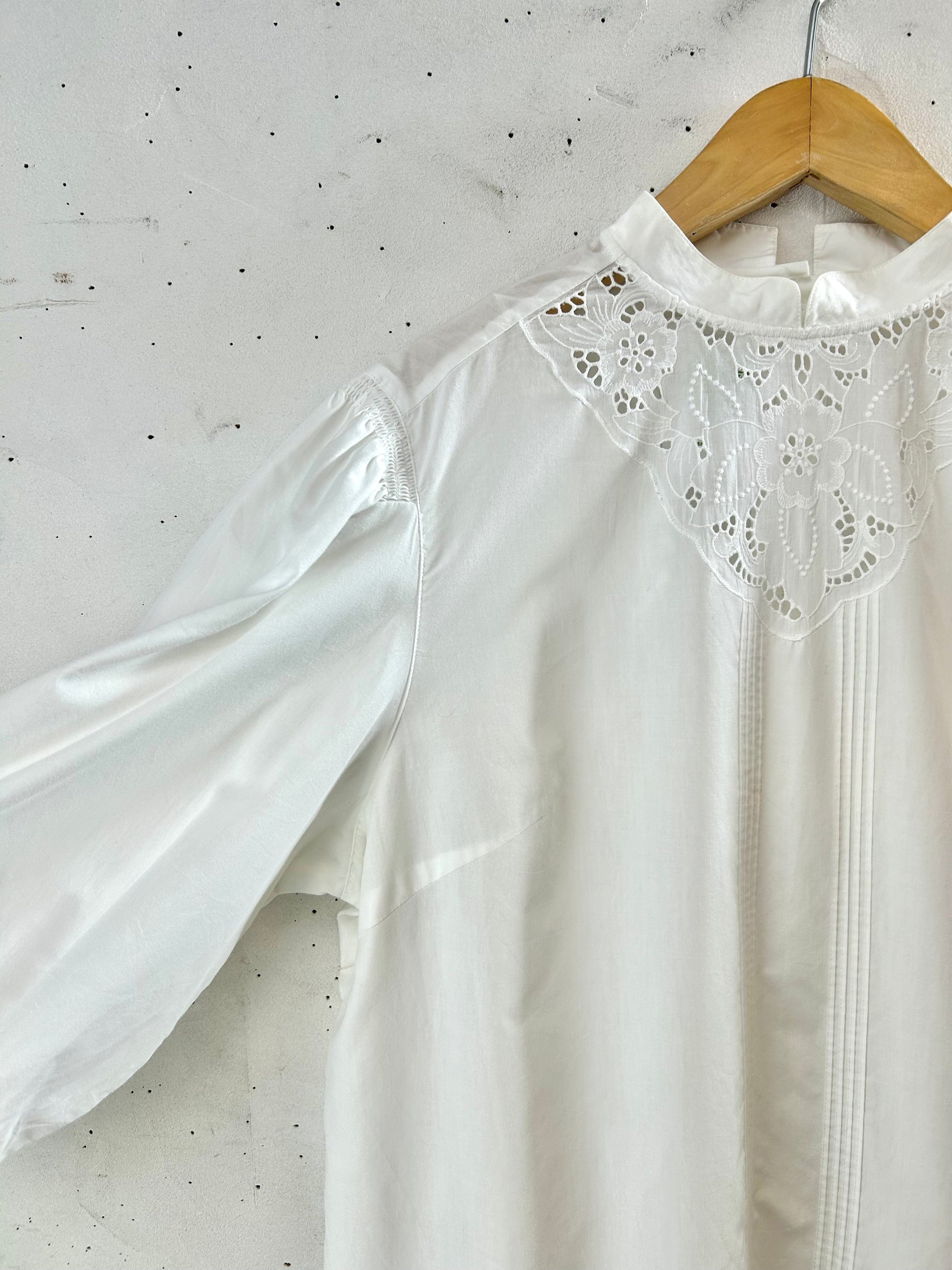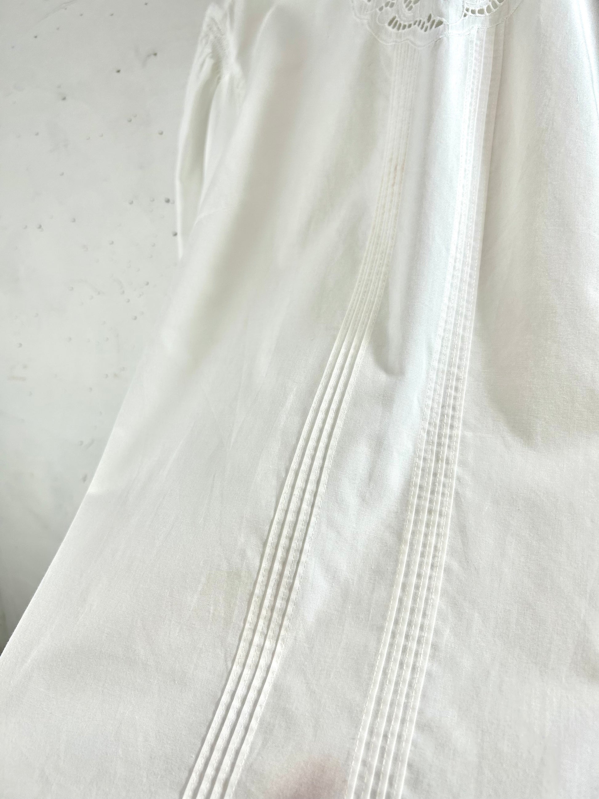 ビンテージアイテムの中でも人気の高い、アイレットレースを使った上品な一着。