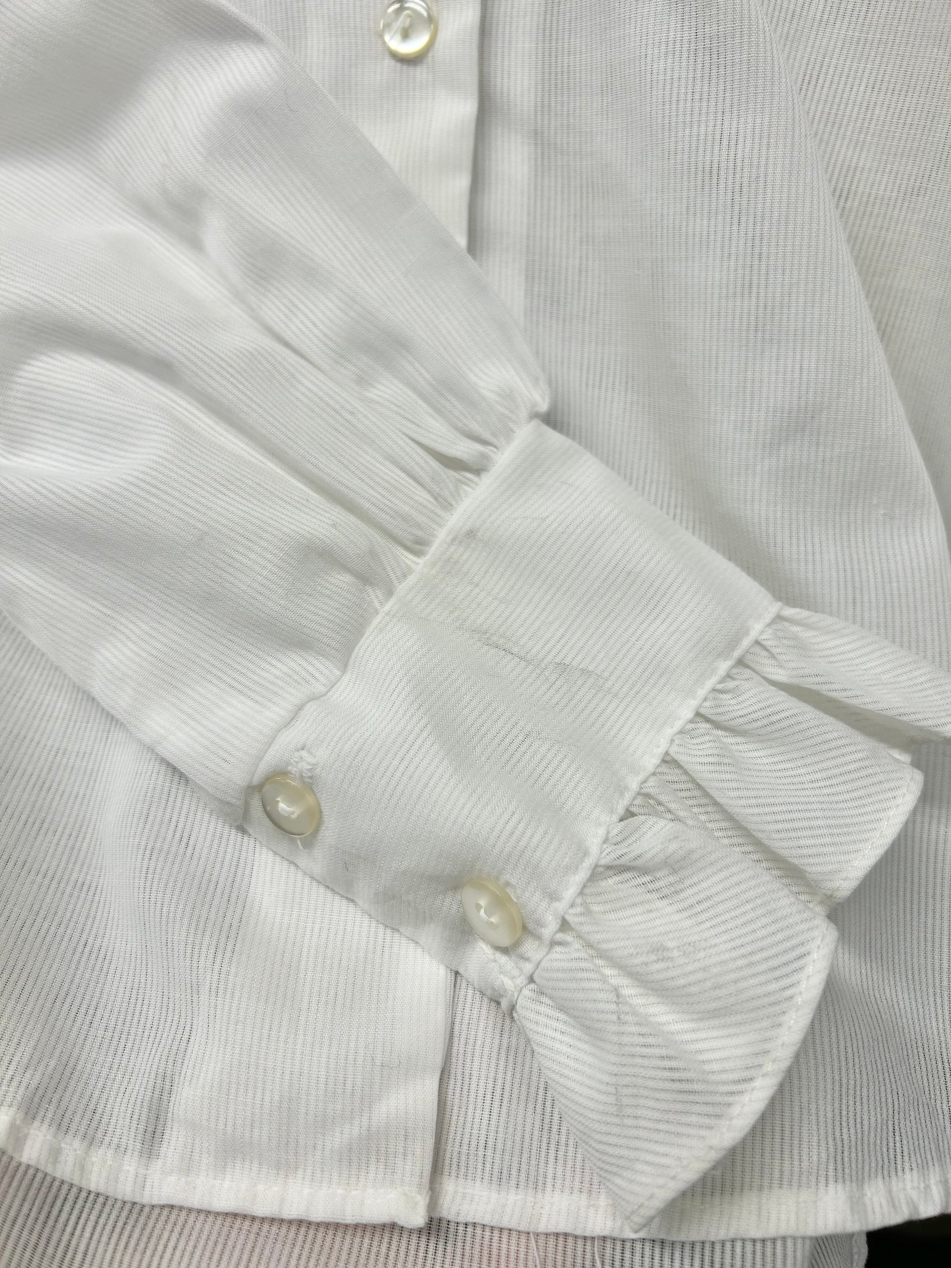 オープンカラーにフリルがついた珍しいデザインの一着。