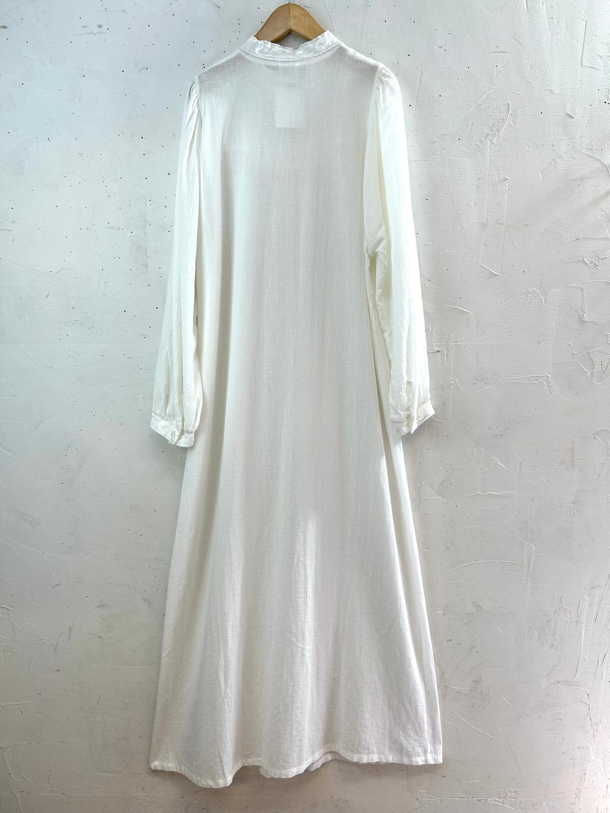 ガーゼの様な柔らかな生地感、胸ヨークの刺繍が光沢感よく素敵な1着。