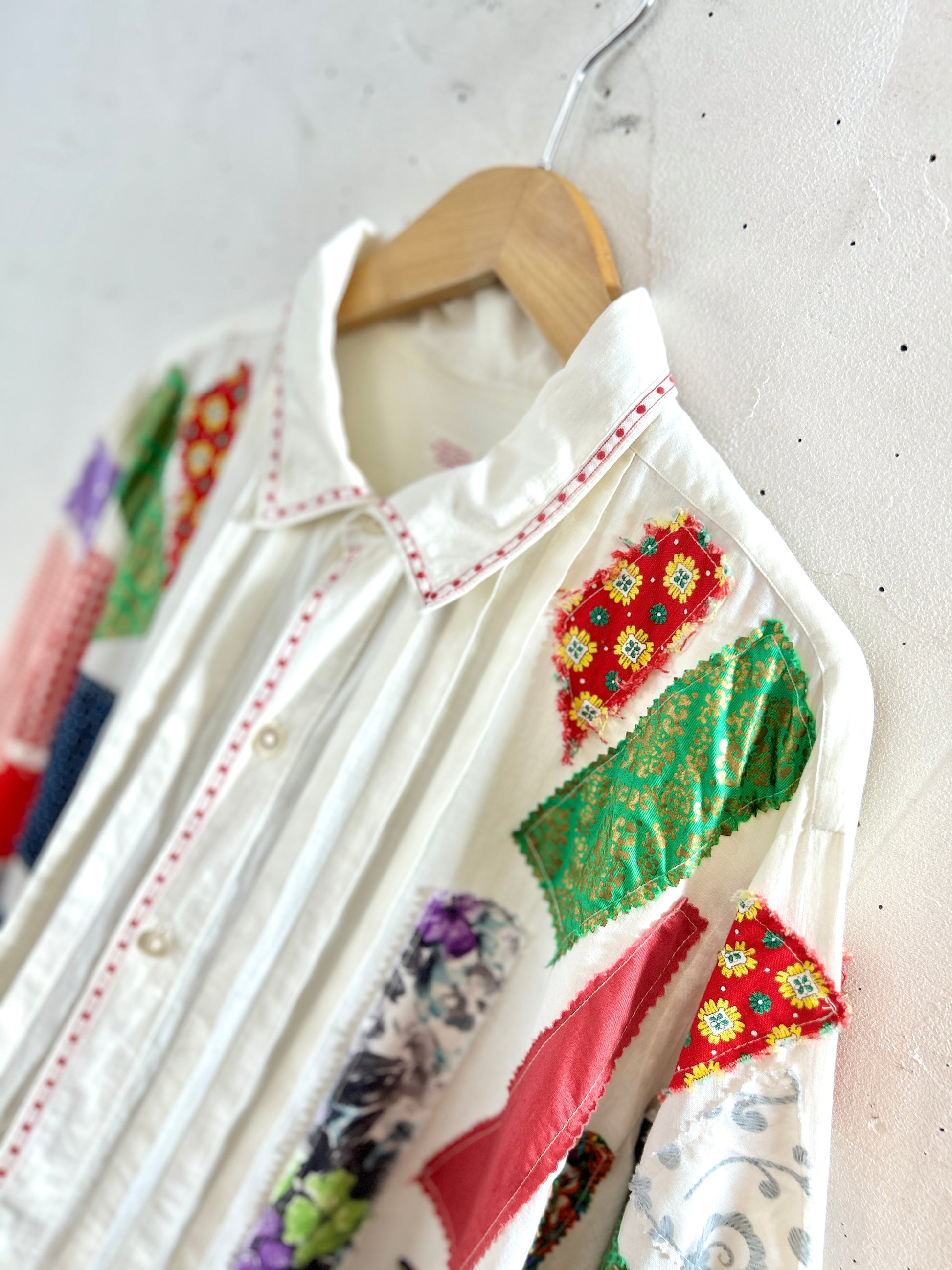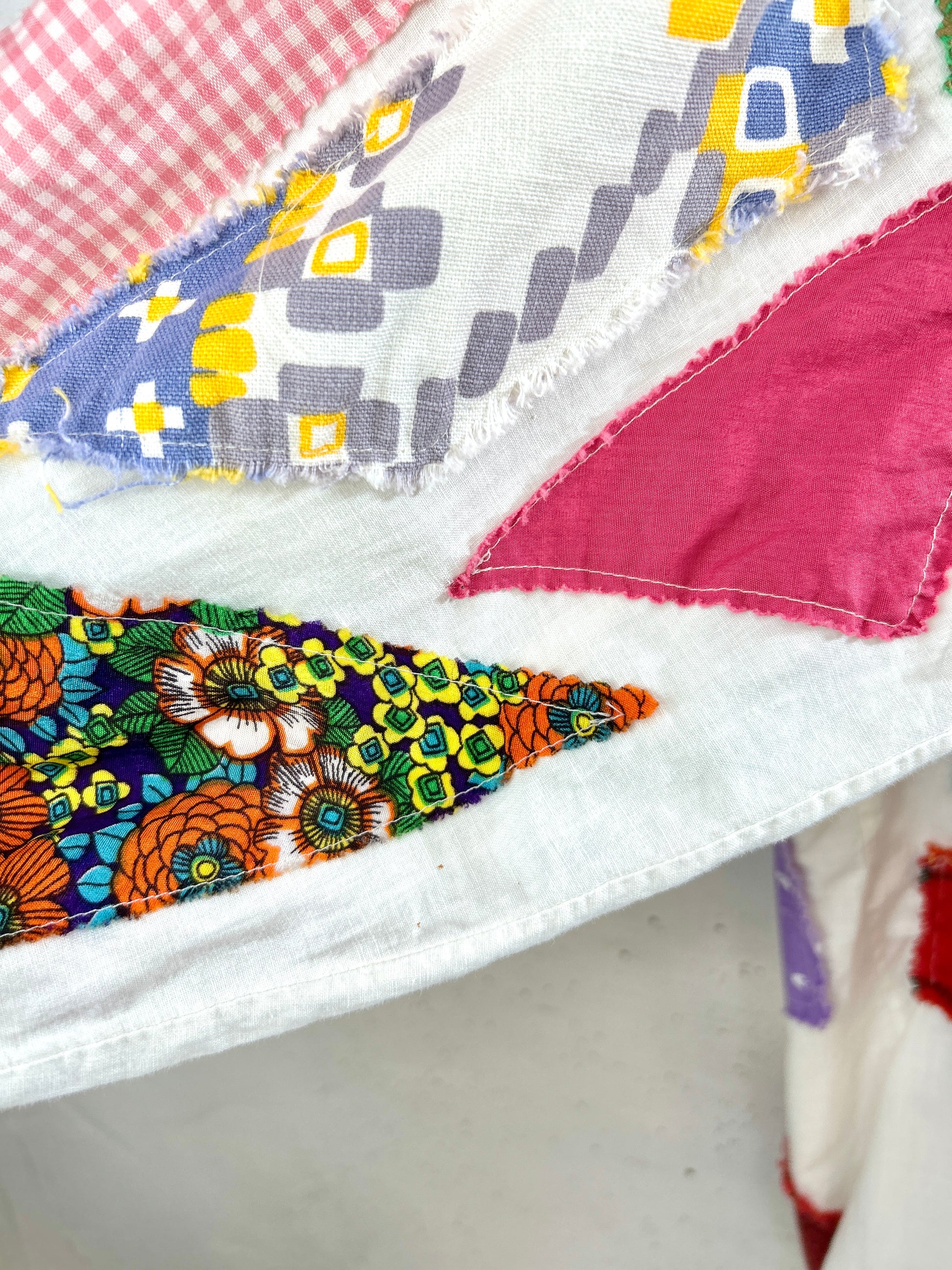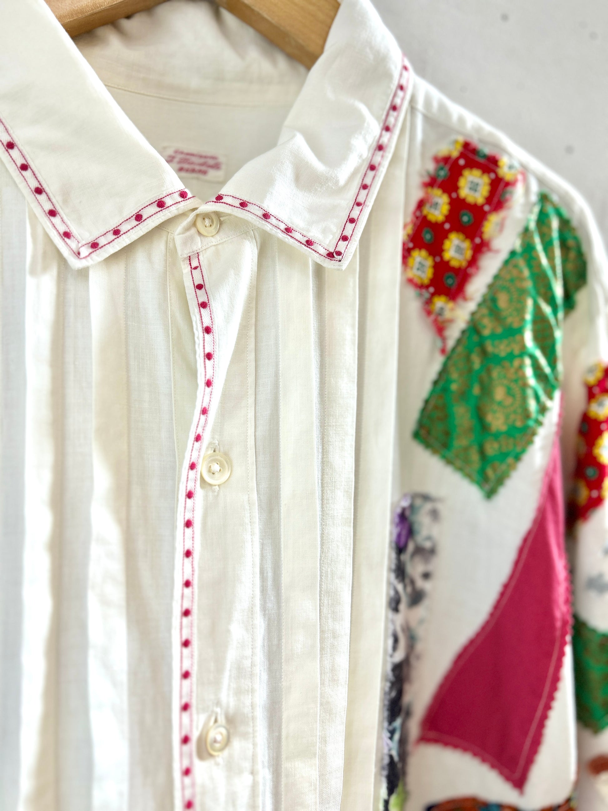 恐らくコットンの肌触りの良い柔らかな生地に、大胆なカスタムが素敵な一着。