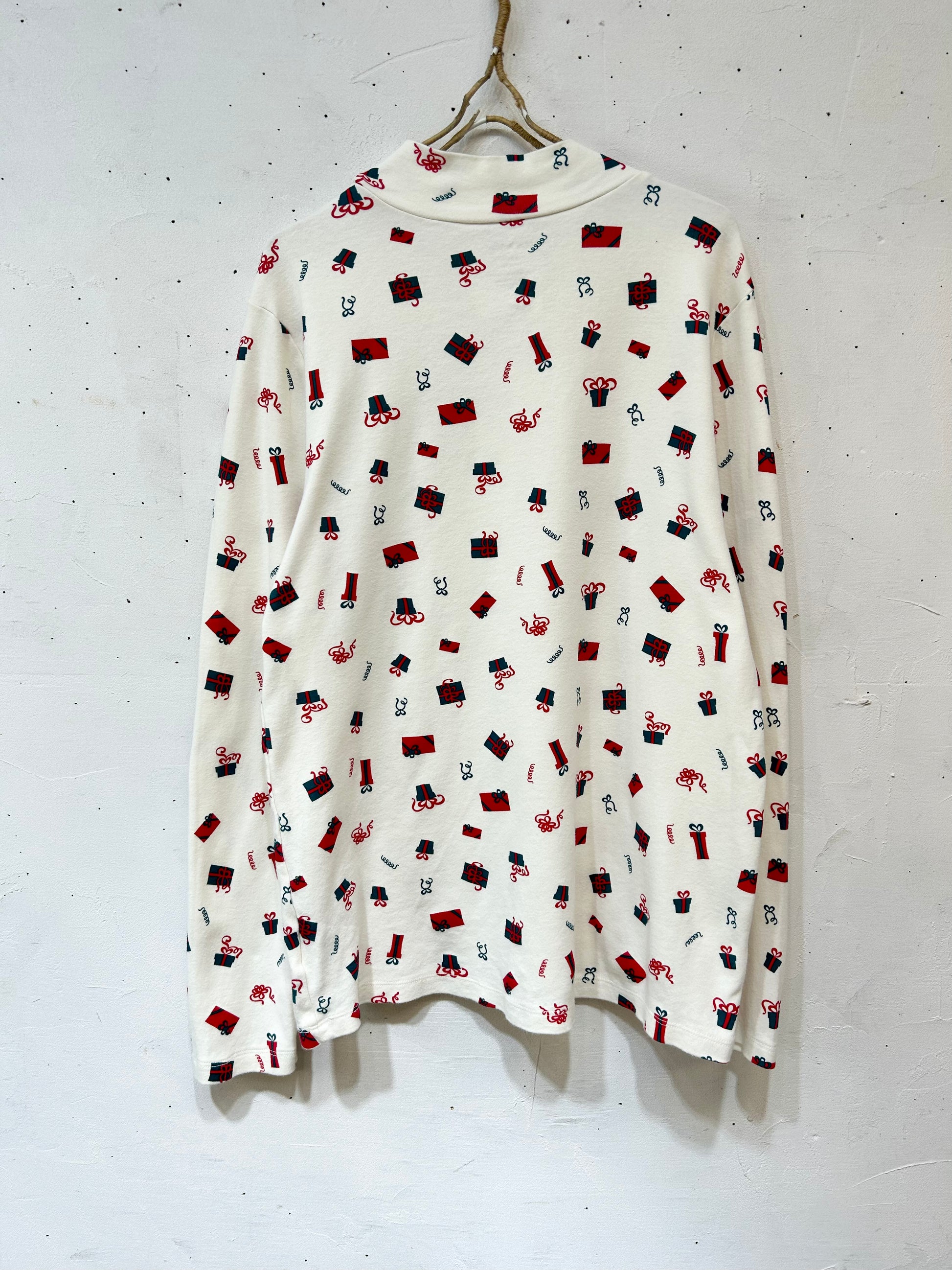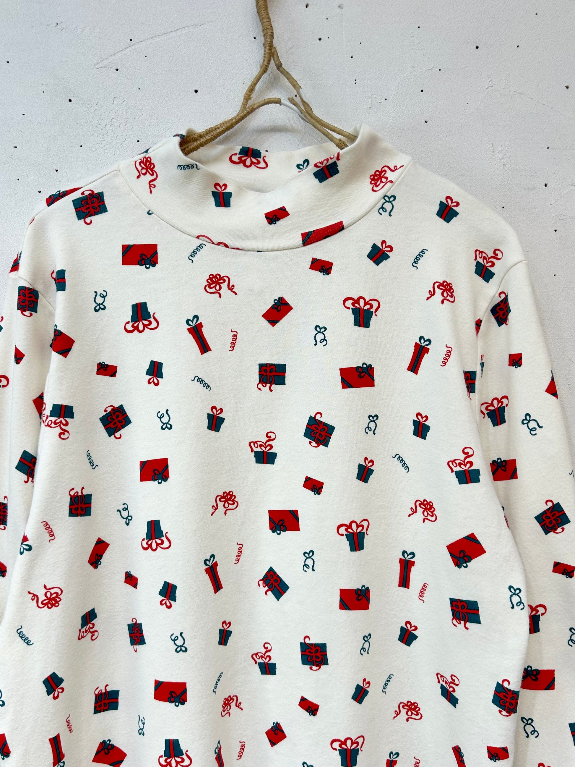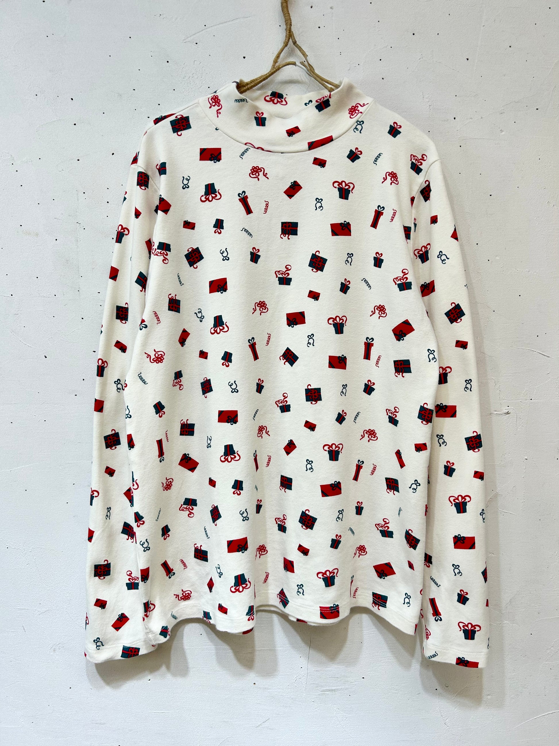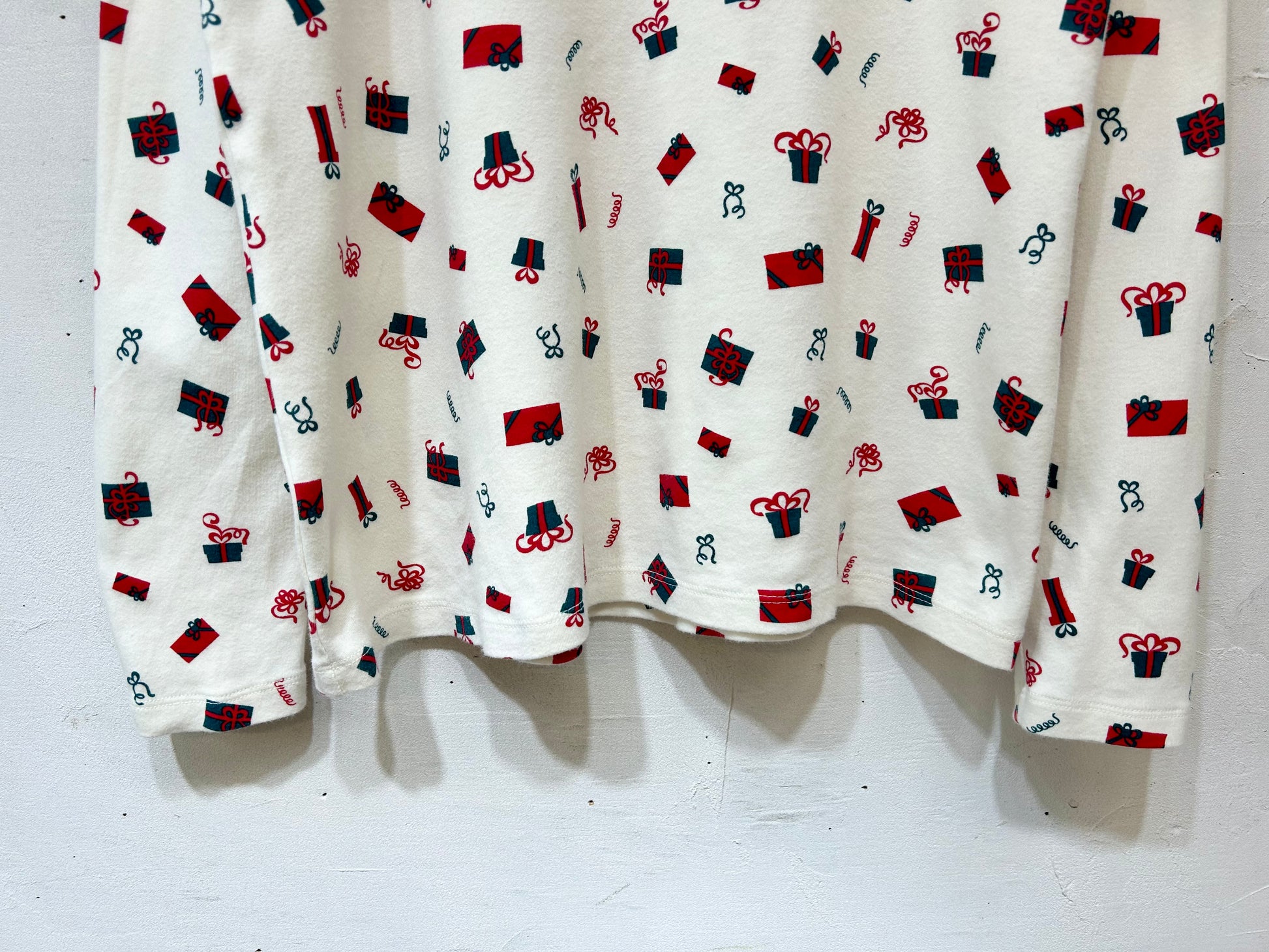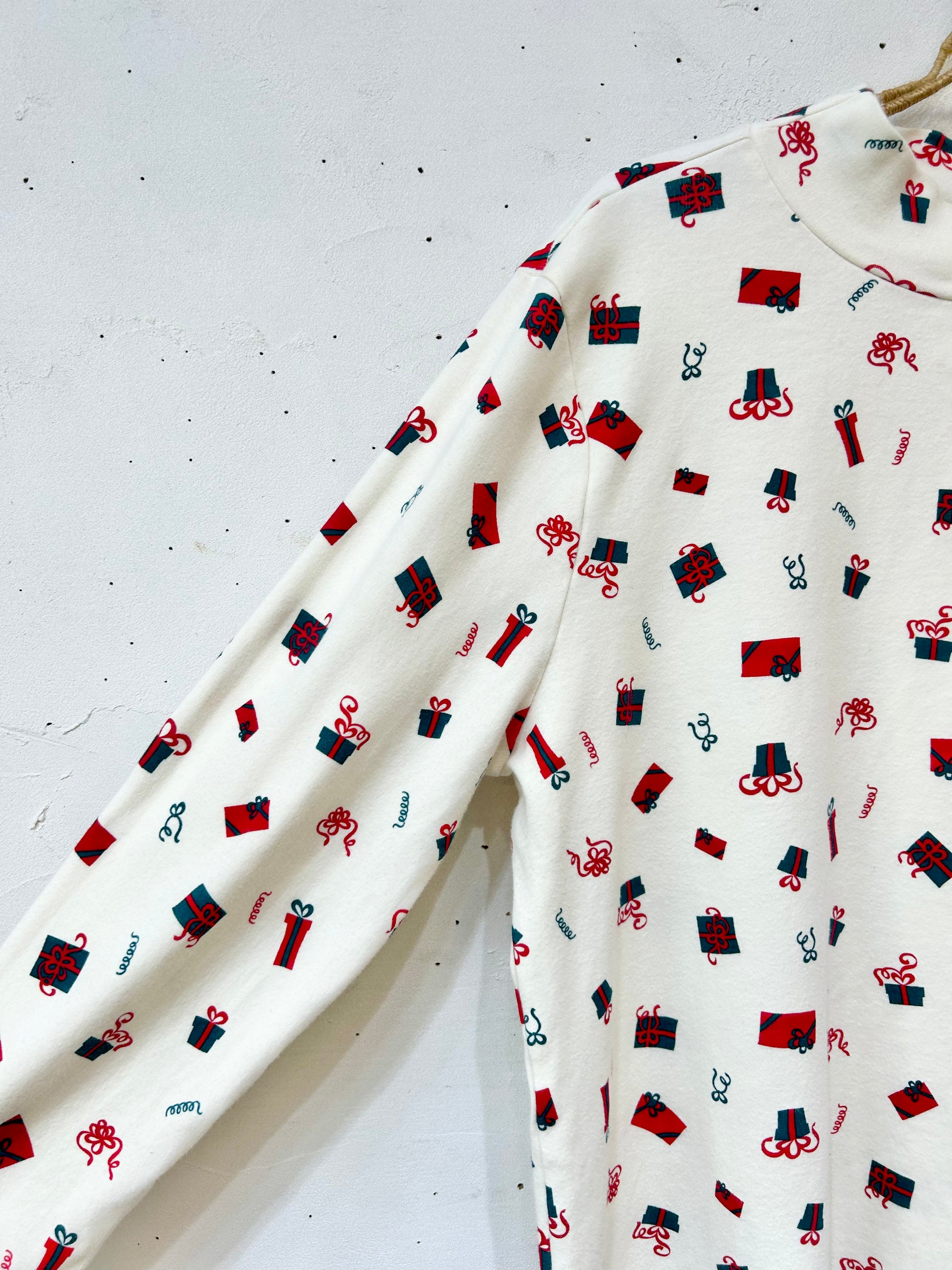 クリスマスカラーのプレゼントボックスの柄がとても可愛らしい一着。